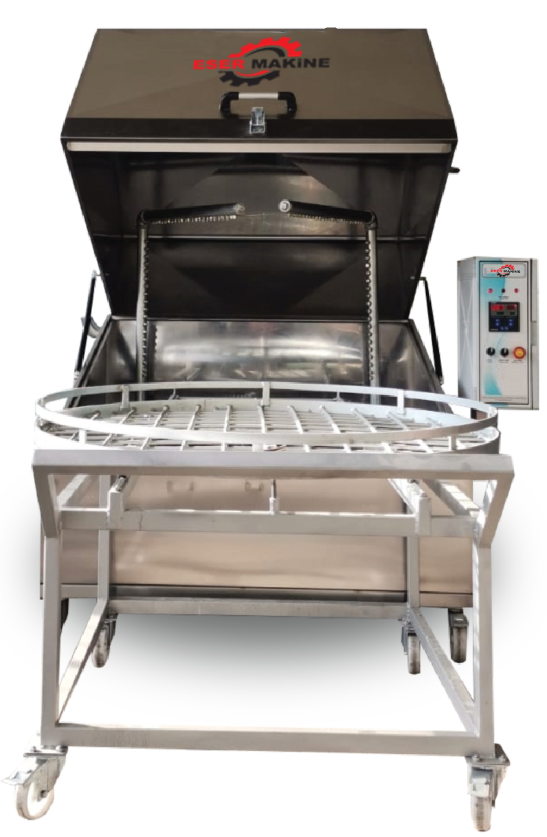 Paslanmaz döner bir platform üzerine kızaklı sistem ile yerleştirilen sepet üzerine yıkanacak olan parçalar yerleştirilmek üzere kapalı bir kabinde yüksek basınçlı deterjanla su ile dönerli sepetli yıkamaya tabi tutulur. Parça yapısına ve kirlilik oranına göre zaman ayarlı basınçlı su nozulları vasıtasıyla kirli yüzeylerdeki yağ, talaş, kir, atıkları değişik açılardan temizlemek üzere yıkama işlemi yapılır. Devir daim sistemi ile su filtre edilmek suretiyle, su, deterjan, elektrik ve zaman (iş gücü) tüketimini en az sarfiyatla parça yıkama tasarlanmıştır.