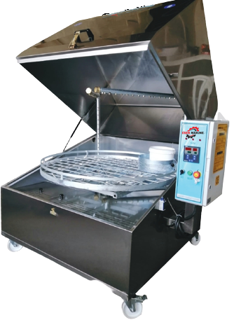 Paslanmaz döner bir platform üzerine kızaklı sistem ile yerleştirilen sepet üzerine yıkanacak olan parçalar yerleştirilmek üzere kapalı bir kabinde yüksek basınçlı deterjanla su ile dönerli sepetli yıkamaya tabi tutulur. Parça yapısına ve kirlilik oranına göre zaman ayarlı basınçlı su nozulları vasıtasıyla kirli yüzeylerdeki yağ, talaş, kir, atıkları değişik açılardan temizlemek üzere yıkama işlemi yapılır. Devir daim sistemi ile su filtre edilmek suretiyle, su, deterjan, elektrik ve zaman (iş gücü) tüketimini en az sarfiyatla parça yıkama tasarlanmıştır.
